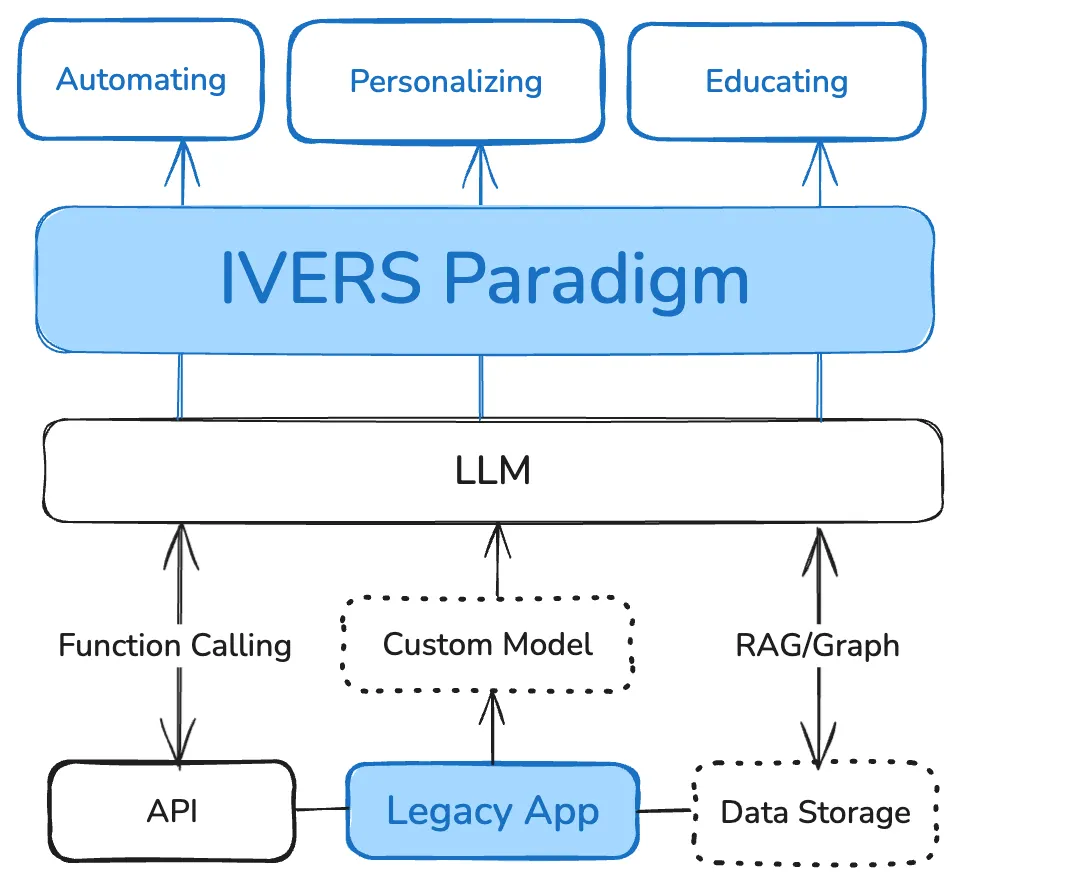 This phenomenon is the divide that has emerged in the software industry with the advent of generative AI. Native AI believes that there is no longer a need for existing legacy software, while traditional software watches nervously as AI capabilities progress rapidly. I believe this suspense is about to end because a new paradigm that is being gradually validated is taking shape. This paradigm will fully integrate generative AI capabilities while also providing a clear direction for modifying existing software applications. This will be a hybrid paradigm, driving industry segmentation, and bringing market efficiency. I summarize this paradigm with five verbs, calling it the IVERS paradigm (Instruct, Visualize, Edit, Re-instruct, Submit).
